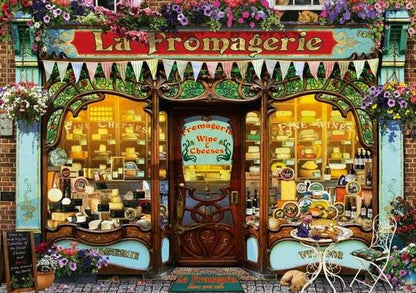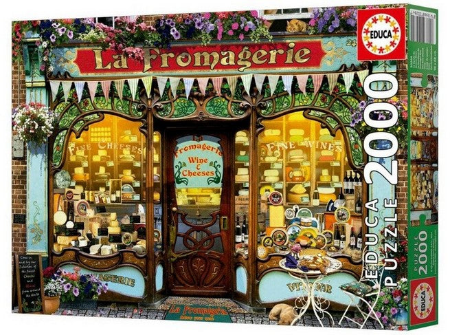 Step into a charming vintage shop front adorned with blooming flowers in this 2000-piece Educa jigsaw puzzle. Capturing the inviting atmosphere of a fine cheese shop, this detailed puzzle offers a rewarding challenge for enthusiasts. Perfect for those who appreciate intricate designs and nostalgic scenes, it brings a touch of timeless elegance to your puzzle collection.